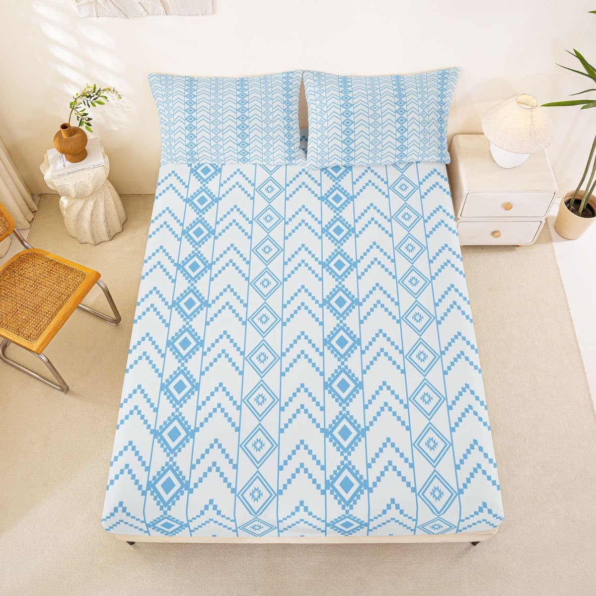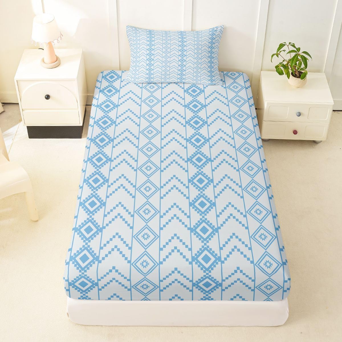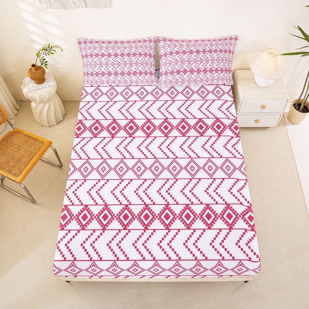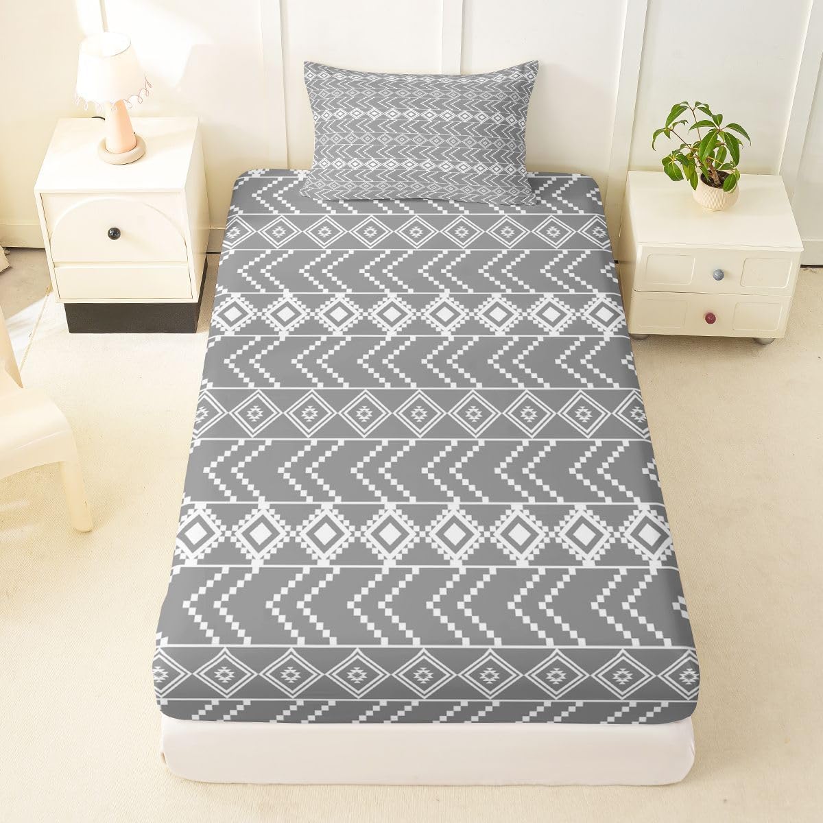 The Modern Fitted Sheet Set Pattern Bedding Set,Simply Decorating your Rooms You Want,Bringing You Fresh Feel for Year Round Use. Made From Polyester Microfiber Size Information: Twin Size: 2Pcs Fitted Sheet Set:1 Fitted Sheet 39"Wx75"Lx16"H(99x190x41cm), 1 Pillowcase 20"x30"(51X75cm). Full Size: 3Pcs Fitted Sheet Set:1 Fitted Sheet 54"Wx75"Lx16"H(137x191x41cm), 2 Pillowcase 20"x30"(51x75cm). Queen Size: 3Pcs Fitted Sheet Set:1 Fitted Sheet 60"Wx80"Lx16"H(152x203x41cm), 2 Pillowcase 20"x30"(51x75cm). : Personalize your Bedroom Vibrant prints and thoughtfully curated designs create a personalized bedroom retreat, supporting restful sleep in comfort With elasticity all around, this fitted sheet can firmly lock onto the mattress, making it suitable for various sleeping positions. Its all round package design ensures a smooth and flat surface. Coordinating envelope pillowcase that is easy to replace, saving time and effort, while maintaining the overall aesthetic appeal. : Washing Instructions Machine Wash Separately In Cold Water,Hang Dry,Do Not Bleach. : Occasion The Soft Fitted Sheet Bedding Sets Designed for Kids,Adult,Men,Women,Teens,Family and Friends.
