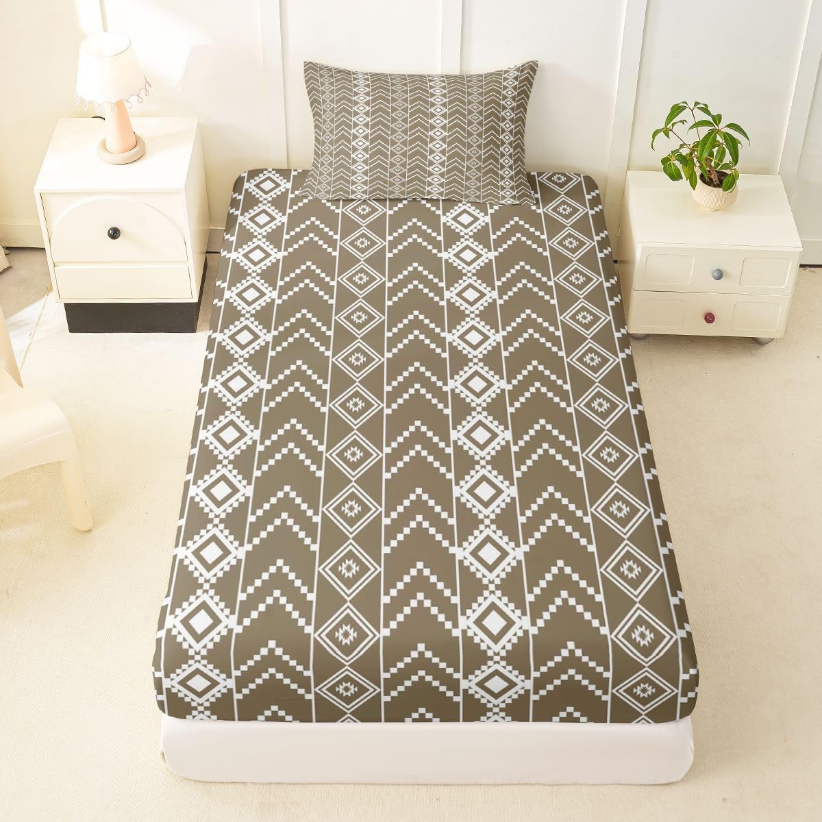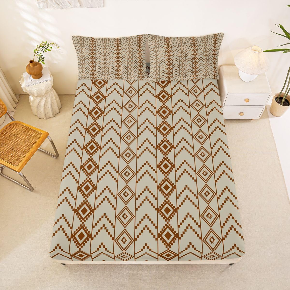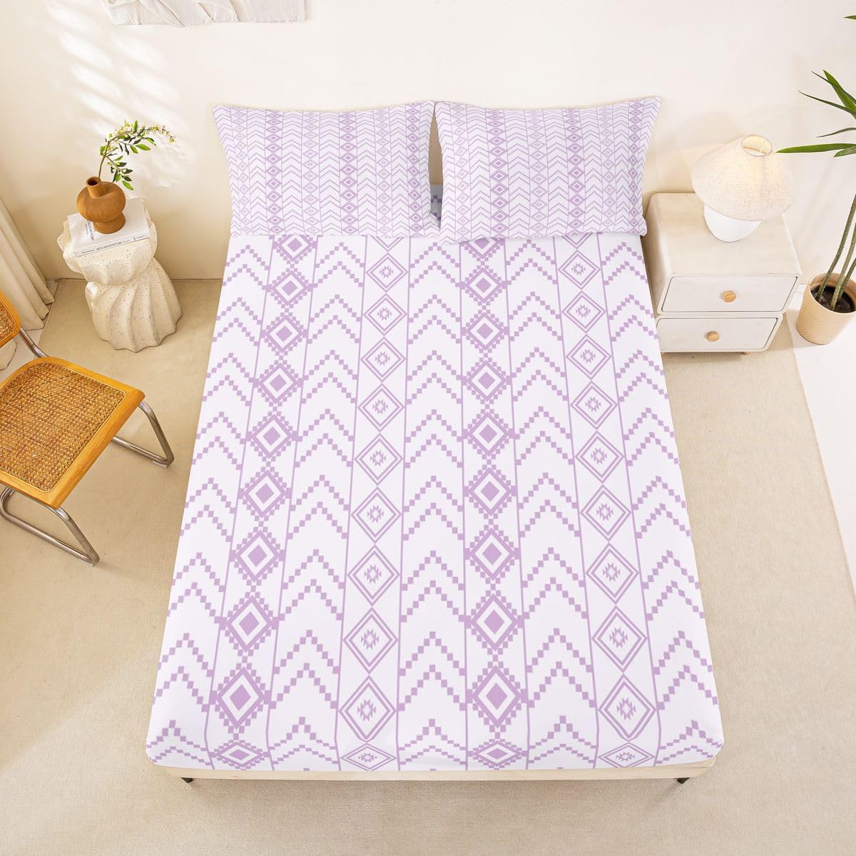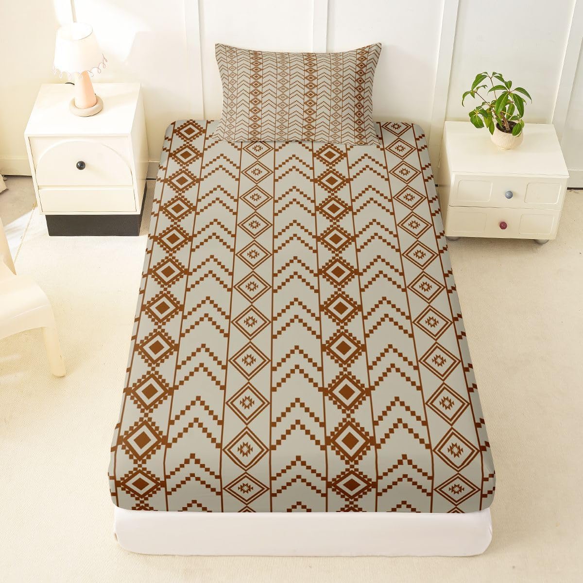 The Modern Fitted Sheet Set Pattern Bedding Set,Simply Decorating your Rooms You Want,Bringing You Fresh Feel for Year Round Use. Made From Polyester Microfiber Size Information: Twin Size: 2Pcs Fitted Sheet Set:1 Fitted Sheet 39"Wx75"Lx16"H(99x190x41cm), 1 Pillowcase 20"x30"(51X75cm). Full Size: 3Pcs Fitted Sheet Set:1 Fitted Sheet 54"Wx75"Lx16"H(137x191x41cm), 2 Pillowcase 20"x30"(51x75cm). Queen Size: 3Pcs Fitted Sheet Set:1 Fitted Sheet 60"Wx80"Lx16"H(152x203x41cm), 2 Pillowcase 20"x30"(51x75cm). : Personalize your Bedroom Vibrant prints and thoughtfully curated designs create a personalized bedroom retreat, supporting restful sleep in comfort With elasticity all around, this fitted sheet can firmly lock onto the mattress, making it suitable for various sleeping positions. Its all round package design ensures a smooth and flat surface. Coordinating envelope pillowcase that is easy to replace, saving time and effort, while maintaining the overall aesthetic appeal. : Washing Instructions Machine Wash Separately In Cold Water,Hang Dry,Do Not Bleach. : Occasion The Soft Fitted Sheet Bedding Sets Designed for Kids,Adult,Men,Women,Teens,Family and Friends.
