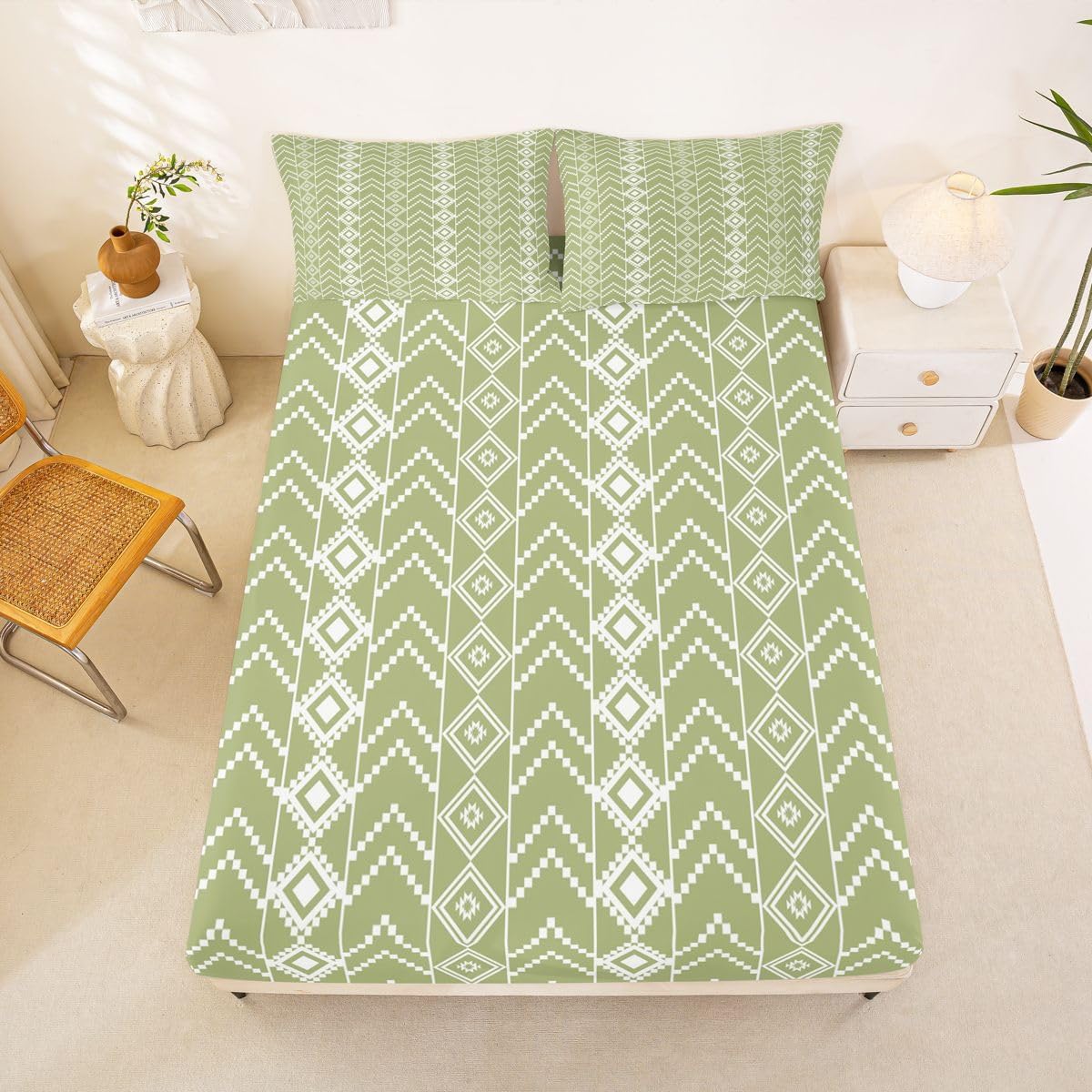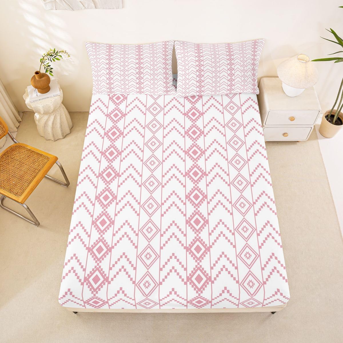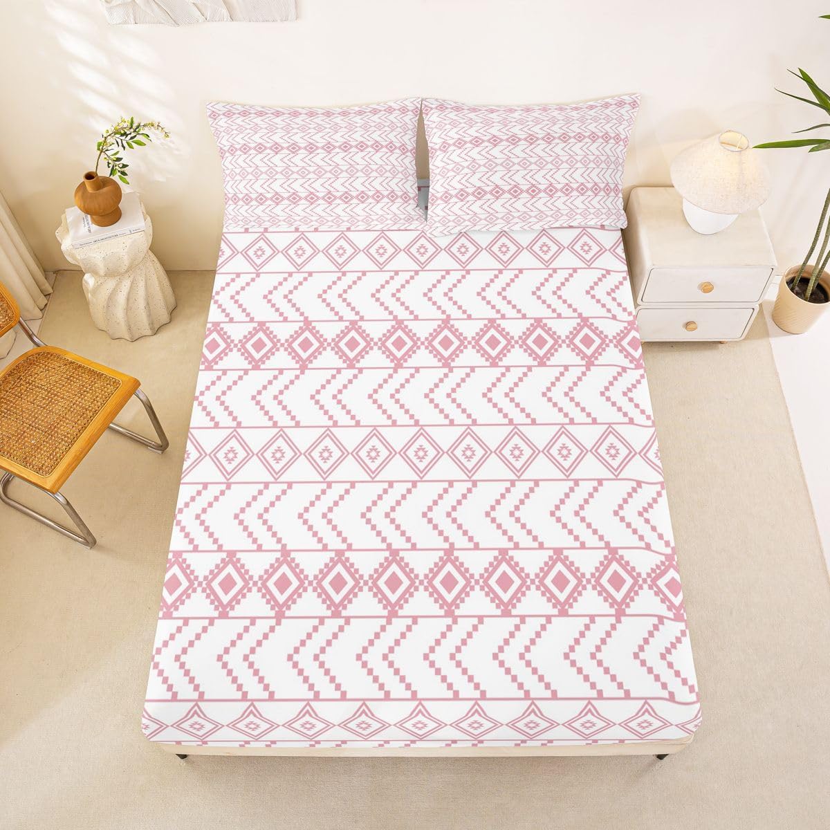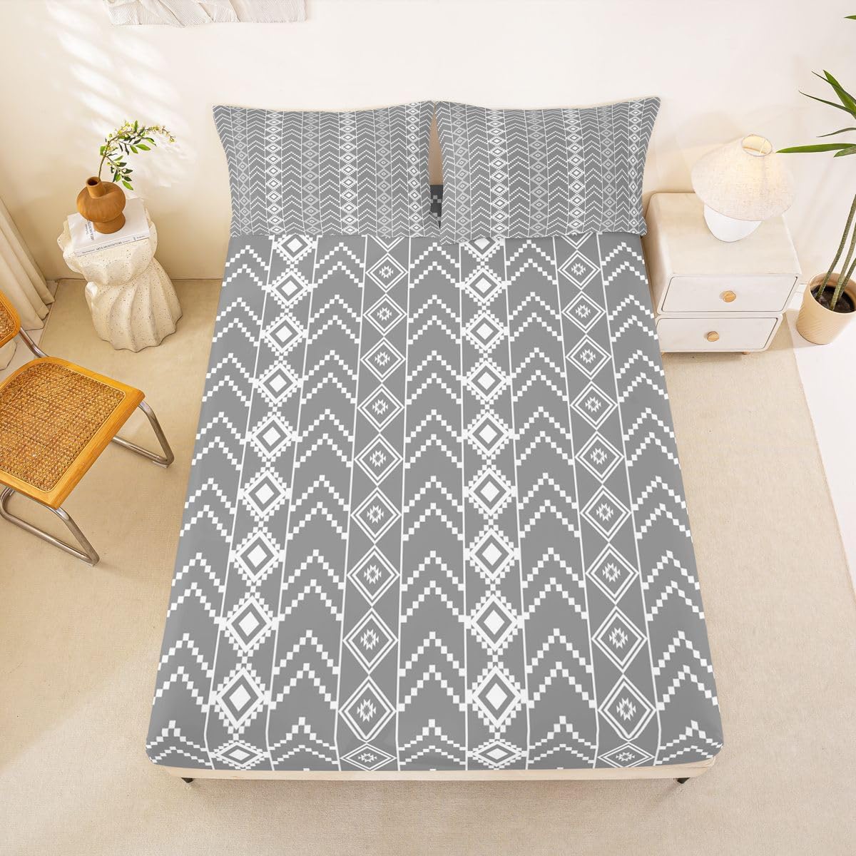 The Modern Fitted Sheet Set Pattern Bedding Set,Simply Decorating your Rooms You Want,Bringing You Fresh Feel for Year Round Use. Made From Polyester Microfiber Size Information: Twin Size: 2Pcs Fitted Sheet Set:1 Fitted Sheet 39"Wx75"Lx16"H(99x190x41cm), 1 Pillowcase 20"x30"(51X75cm). Full Size: 3Pcs Fitted Sheet Set:1 Fitted Sheet 54"Wx75"Lx16"H(137x191x41cm), 2 Pillowcase 20"x30"(51x75cm). Queen Size: 3Pcs Fitted Sheet Set:1 Fitted Sheet 60"Wx80"Lx16"H(152x203x41cm), 2 Pillowcase 20"x30"(51x75cm). : Personalize your Bedroom Vibrant prints and thoughtfully curated designs create a personalized bedroom retreat, supporting restful sleep in comfort With elasticity all around, this fitted sheet can firmly lock onto the mattress, making it suitable for various sleeping positions. Its all round package design ensures a smooth and flat surface. Coordinating envelope pillowcase that is easy to replace, saving time and effort, while maintaining the overall aesthetic appeal. : Washing Instructions Machine Wash Separately In Cold Water,Hang Dry,Do Not Bleach. : Occasion The Soft Fitted Sheet Bedding Sets Designed for Kids,Adult,Men,Women,Teens,Family and Friends.