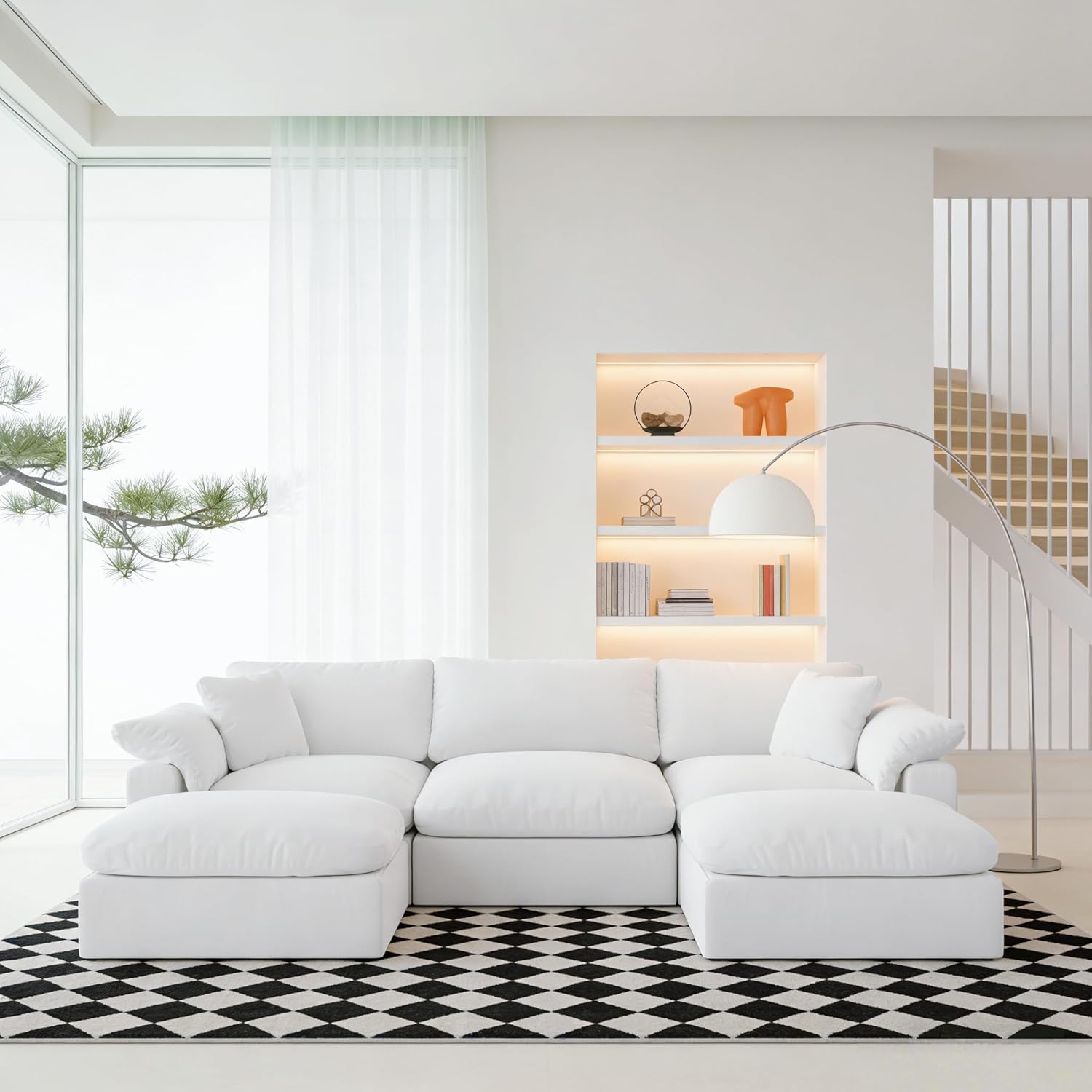 This oversized, deep-seat modular sectional sofa is designed for ultimate comfort and style, featuring plush down-filled cushions that invite you to sink in and relax. Crafted with premium stain-resistant and water-repellent performance fabric, this cloud-like couch not only looks chic but also stands up to everyday life, making it perfect for families and pet owners alike. The Cloud Couch’s removable and washable covers ensure easy maintenance, allowing you to keep your sofa looking fresh and clean with minimal effort. Whether you're hosting a movie night or enjoying a quiet afternoon, this versatile sectional adapts to any occasion, offering ample seating and flexibility to fit your space. Elevate your home decor with the timeless elegance of the Cloud Couch Sectional – where comfort meets functionality in a stunning white finish. Experience the bliss of lounging on a luxurious down-filled sofa that truly feels like a piece of heaven!
