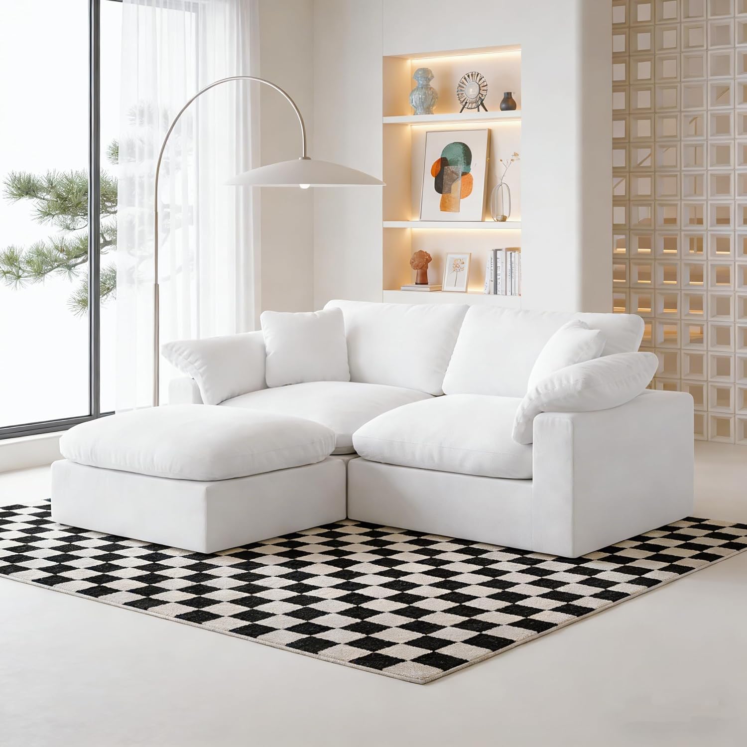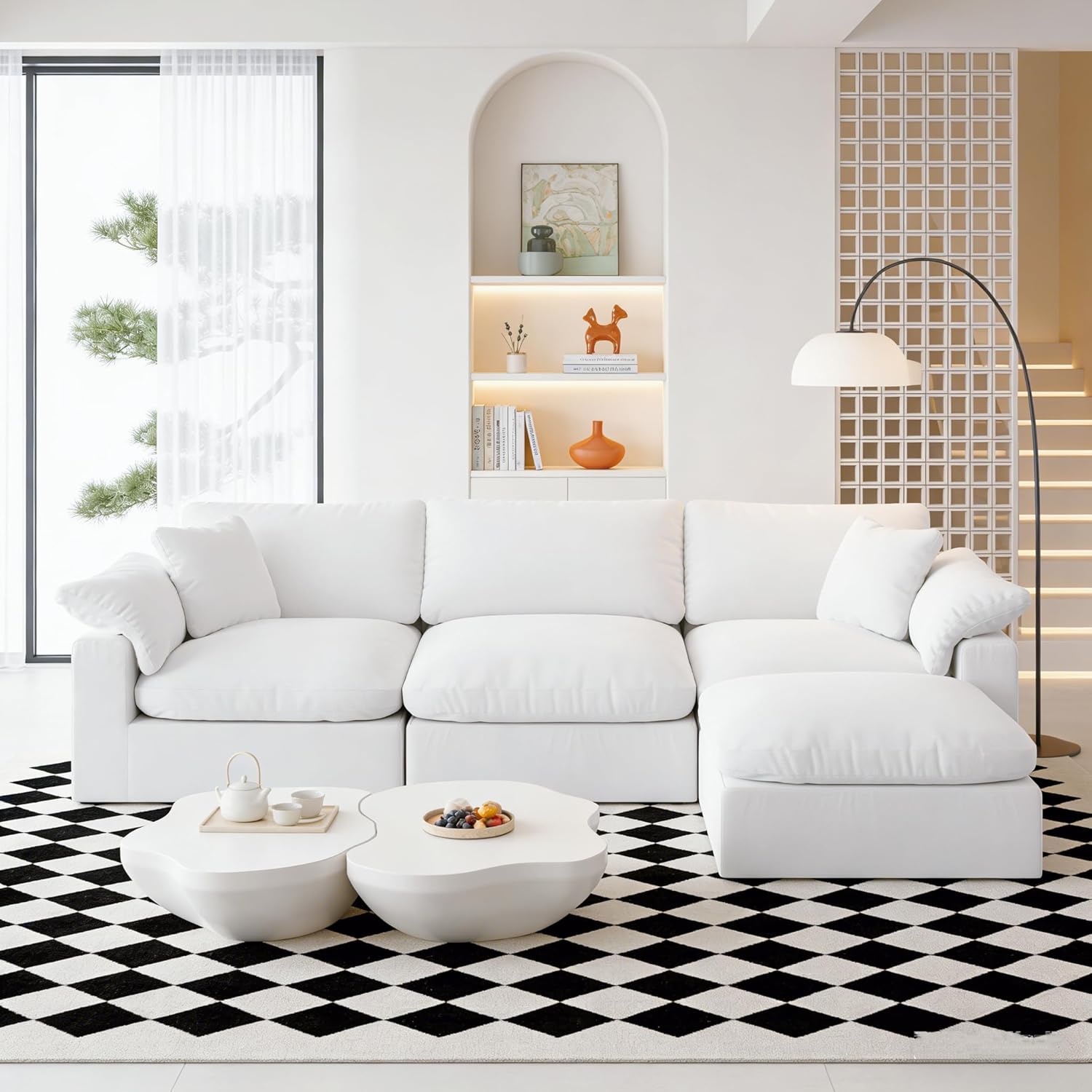 White Cloud Couch Modular Sectional Sofa, Oversized Convertible Deep Seat Sofa, Comfy Cloud Couches for Living Room, Down Filled Cushions & Pillows, Removable & Washable Covers, Spill-Proof Fabric