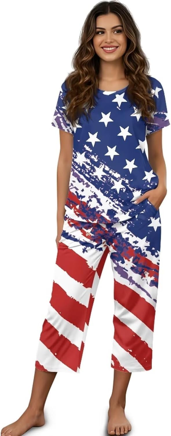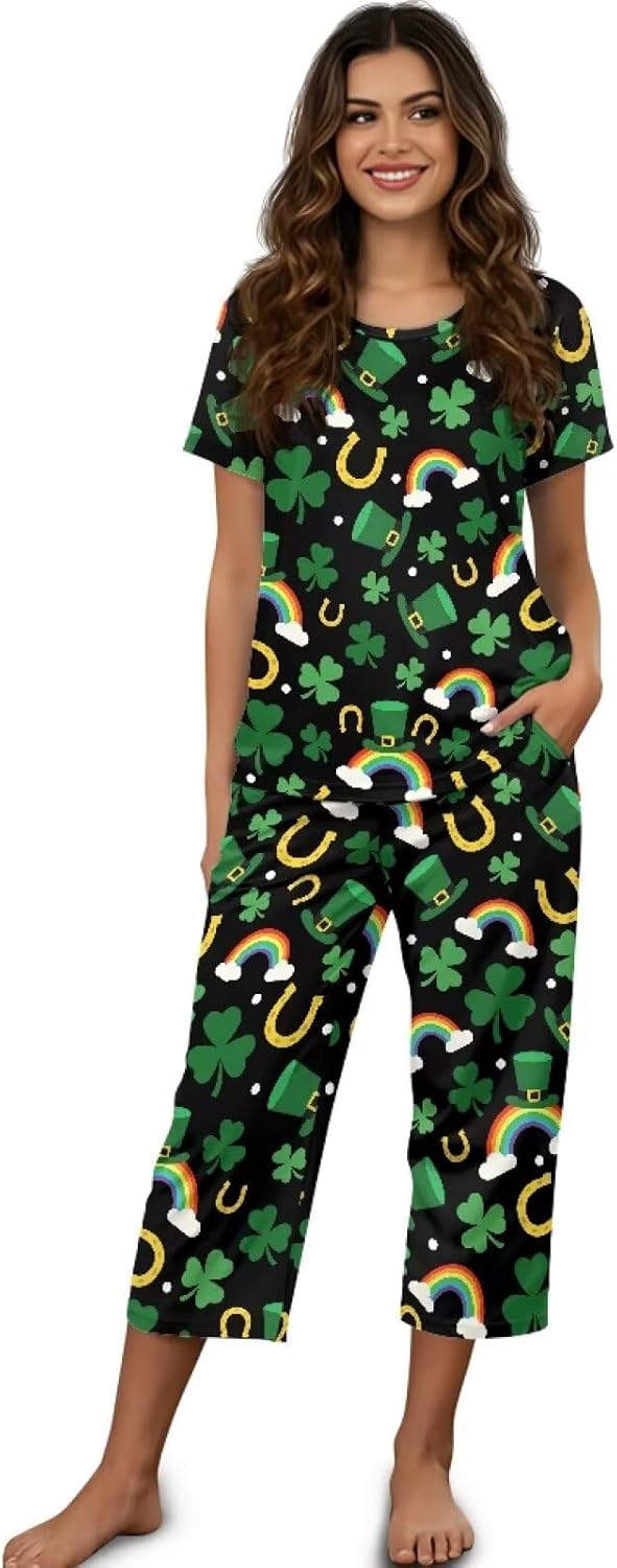 Spowatriy Women's Short Sleeve Sleep Set - Comfortable Polyester-Spandex Blend Experience optimal comfort with our thoughtfully designed sleepwear set, crafted to provide both relaxation and practicality for your nightly routine and daytime leisure. This 2-piece ensemble combines quality materials with functional details for a superior at-home experience. Fabric & Comfort Features: Material: 95% polyester + 5% spandex blend Stretch: Four-way elasticity for unrestricted movement Breathability: Moisture-wicking properties keep you cool Design Details: Top: Short sleeve with classic round neckline Pants: Elastic waistband with adjustable fit Pockets: Two side pockets on pants Fit: Relaxed silhouette through body and limbs Seams: Flatlock stitching prevents irritation Versatile Applications: Sleepwear: Comfortable for all-night rest Loungewear: Perfect for relaxing at home Travel: Ideal for overnight trips and vacations Recovery: Suitable for post-surgery comfort Casual Wear: Presentable for quick errands or receiving guests Perfect For: Warm weather sleep comfort At-home relaxation and leisure Overnight guests and hostess gifts Postpartum and recovery periods Building a practical sleepwear wardrobe