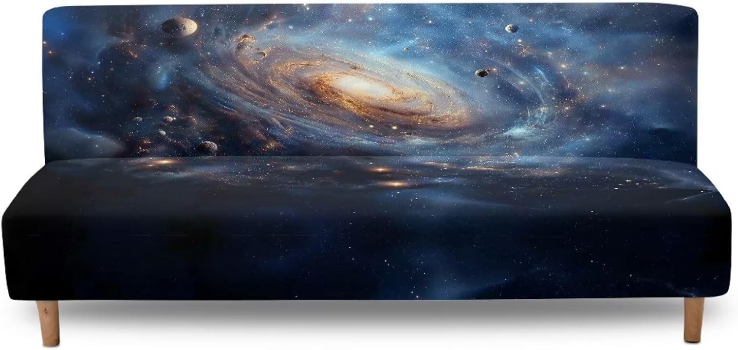 Transform your futon sofa into a stylish, protected piece of furniture with our premium Futon Sofa Slipcover! Whether you're dealing with energetic pets, messy kids, or just want to give your living room a fresh new look, this slipcover delivers both function and fashion. Crafted from a breathable, soft blend of polyester and spandex, this cover offers exceptional stretch and comfort without compromising durability. The elastic bottom edge ensures a tight, anti-slip fit that stays in place all day long—no more shifting or bunching. With full back and seat coverage, it shields your sofa from scratches, stains, crumbs, and everyday wear, extending its life significantly. Our slipcover is perfect for busy households. It's pet-friendly, kid-safe, and spill-resistant, making cleanup a breeze. Just pop it in the washing machine when needed—no hassle, no stress. Plus, the vibrant print adds a cheerful, modern touch to any decor style, turning your ordinary futon into a statement piece. Available in a versatile size range (68–85 inches wide), this slipcover fits most standard and large futon sofas. Thanks to its heavy-duty stitching and flexible design, it’s built to withstand daily use while maintaining its shape and color over time. Give your sofa a brand-new look today—protect it, refresh it, love it. Choose our futon slipcover and enjoy a cleaner, cozier, and more beautiful living space.