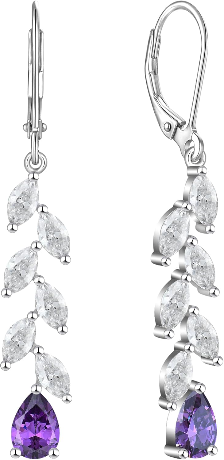 YL Wedding Dangle Earrings for Brides Bridesmaid Teardrop Birthstone Long Bridal Leverback Earrings Jewelry for Women